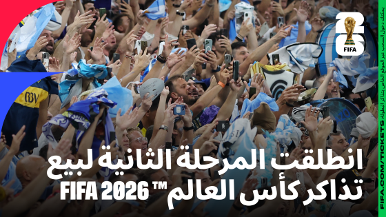 أعلنت الاتحاد الدولي لكرة القدم (فيفا) اليوم عن انطلاق المرحلة الثانية من عملية بيع تذاكر كأس العالم FIFA 2026™، التي تحمل اسم “قرعة مرحلة التذاكر المُبكرة”، وهي الخطوة الجديدة ضمن المسار التدريجي لتوزيع التذاكر الخاصة بأكبر نسخة في تاريخ البطولة التي ستُقام في كلٍّ من كندا والمكسيك والولايات المتحدة الأمريكية.