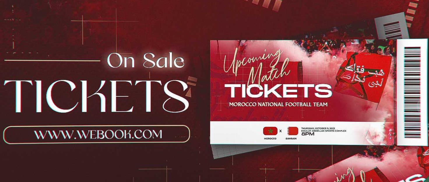 أعلنت اللجنة المنظمة لمباراة المنتخب الوطني أمام منتخب البحرين، والمقرر إجراؤها يوم الخميس 9 أكتوبر 2025 على أرضية ملعب الأمير مولاي عبد الله بمدينة الرباط ابتداءً من الساعة الثامنة مساءً، عن انطلاق عملية بيع التذاكر الخاصة بهذه المقابلة ابتداءً من يوم الاثنين 29 شتنبر 2025 على الساعة التاسعة صباحا بنفس أثمنة المباراة السابقة أمام منتخب النيجر.