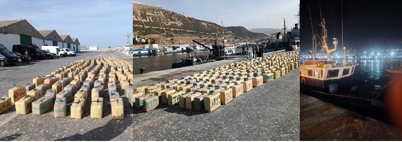 استغلالا للمعطيات الدقيقة في مجال الاستعلام الجنائي التي وفرتها المديرية العامة لمراقبة التراب الوطني، تمكنت عناصر الشرطة بمدينة أكادير بتعاون وتنسيق مع مصالح البحرية الملكية والدرك الملكي من ضبط قارب للصيد وإحباط محاولة للتهريب الدولي لشحنة كبيرة من المخدرات ناهزت عشرة أطنان و 542 كيلوغرام من مخدر الشيرا.