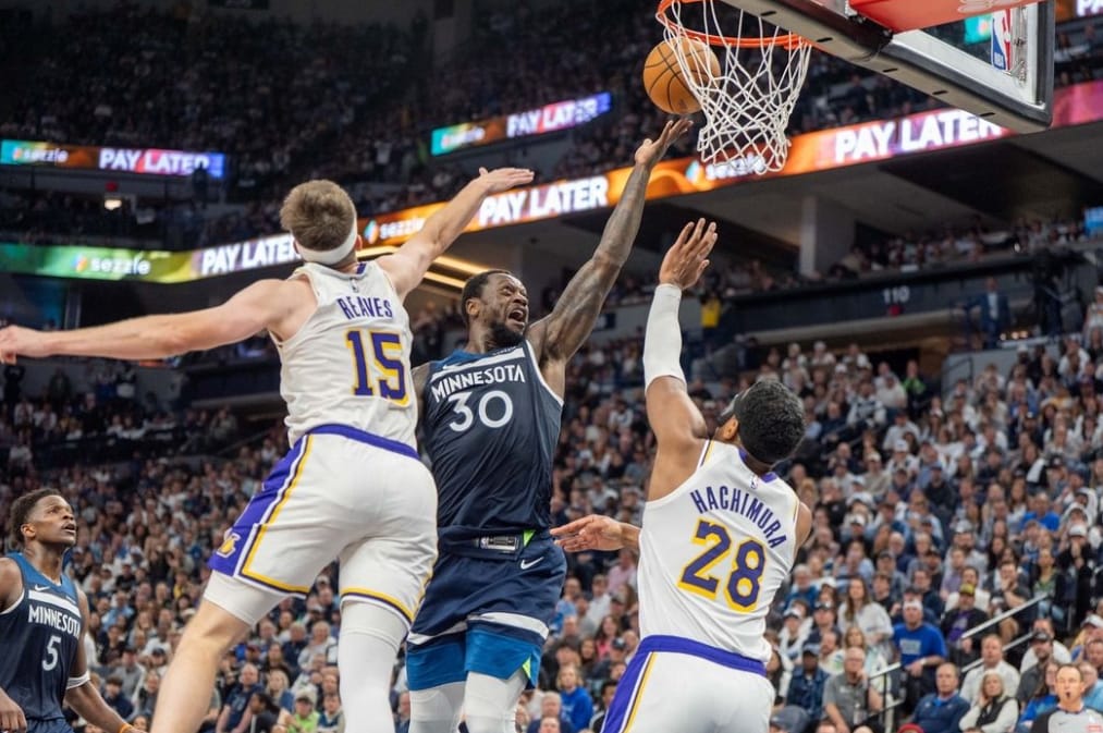 اقترب لوس أنجليس ليكرز من توديع الأدوار الإقصائية “بلاي أوف” في دوري كرة السلة الأميركي للمحترفين بعد خسارته المثيرة أمام مضيفه مينيسوتا تمبروولفز 113-116، ليصبح متأخراً 1-3 في سلسلة الدور الأول للمنطقة الغربية.