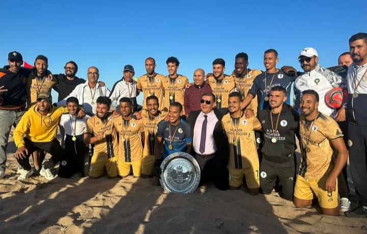 توج نادي صقر أكادير لكرة القدم الشاطئية بلقب بطولة المغرب للموسم الرياضي المنصرم ،بعد أن تمكن من تصدر الترتيب العام في منافسات البطولة المصغرة “البلاي أوف ” التي إحتضنها شاطئ مدينة المحمدية اليوم الجمعة 24 نونبر 2023.